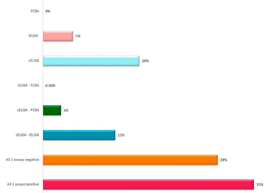 重癥肌無力患者中乙酰膽堿受體抗體檢測:比較兩種ELISA法和一種固定CBA法發(fā)表時間:2023-08-14 10:05作者:RSRTJ 摘要 重癥肌無力(Myasthenia gravity, MG)是一種自身免疫性神經肌肉疾病,以骨骼肌神經肌肉連接處的自身抗體為特征[1]。該病的臨床表現(xiàn)多樣,從輕度局灶性無力到肌無力危象不等[2-4]。MG癥狀可局限于眼部肌肉,通常稱為眼肌型MG (OMG),也可涉及其他骨骼肌癥狀,導致全身型MG (GMG)??贵w檢測對于臨床確診MG和患者的指導管理至關重要[5]。MG患者血清中最常見的抗體類型是針對乙酰膽堿受體(AChR)的抗體。 血清抗乙酰膽堿受體(AChR)抗體檢測是目前診斷重癥肌無力(MG)的重要工具,約85%的MG患者存在AChR抗體?,F(xiàn)在有許多血清學檢測方法,但這些檢測方法的結果在某些患者中可能存在差異。本研究的目的是比較市售的固定細胞檢測(FCBA)和酶聯(lián)免疫吸附測定(ELISA)試劑盒在MG患者AChR抗體檢測中的分析性能。 143例確診為MG的患者被納入研究。血清AChR抗體的測定采用三種分析方法,即競爭ELISA (cELISA)、間接ELISA (iELISA)和固定CBA (FCBA)。 ![]() cELISA:購自RSR Ltd. (Cardiff, UK); iELISA:購自Euroimmun (Lübeck, Germany); FCBA:購自Euroimmun (Lübeck, Germany)。 研究結果表明,cELISA比iELISA和FCBA具有更好的分析性能。 材料與方法 1 研究人群 來自意大利巴勒莫大學的觀察回顧性研究,納入143例MG患者(男性66例,女性77例,中位年齡61歲),MG的確診依據(jù)國際MG管理共識指南[24]。 對照:70例年齡和性別相匹配健康人血清。 2.AChR抗體的測定方法 血清AChR抗體的測定采用三種不同方法學的市售商業(yè)試劑盒(表1)。 表1 cELISA、iELISA和FCBA的特點 ![]() ![]() 結果 1. MG患者的人口學和臨床特征 采用三種方法檢測了143例MG患者(男:女=66:77,中位年齡61歲)和70名健康對照(男:女=28:32,中位年齡50歲)的AChR抗體。表2顯示了MG患者的人口學和臨床特征。 表2 MG患者的人口學和臨床特征 ![]() 2. 三種方法抗體檢測結果 AChR抗體的陽性檢出率分別為,cELISA為94/143(66%),iELISA為75/143(52%),F(xiàn)CBA為61/143(43%)(表3-5)。 ![]() 采用一致性配對和Cohen’s kappa評價,各方法一致性如下: ![]() 三種檢測方法的綜合陽性數(shù)據(jù)見圖2。三種檢測均為陽性占35%,均為陰性占29%。 cELISA單陽占16%,iELISA單陽占5%,F(xiàn)CBA單陽占0%。 26例MG受試者呈現(xiàn)cELISA陽性但iELISA陰性。這26例患者在FCBA法中僅有3例檢出陽性。在7例cELISA陰性但iELISA陽性的患者中,F(xiàn)CBA沒有一例為陽性。 雙方法學相互驗證的結果反映出cELISA法的漏檢率低,F(xiàn)CBA法的漏檢率高。cELISA+iELISA陽性(FCBA單陰率)占12%,cELISA+FCBA陽性(iELISA單陰性)占3%,iELISA+FCBA陽性(cELISA單陰性)占0%。